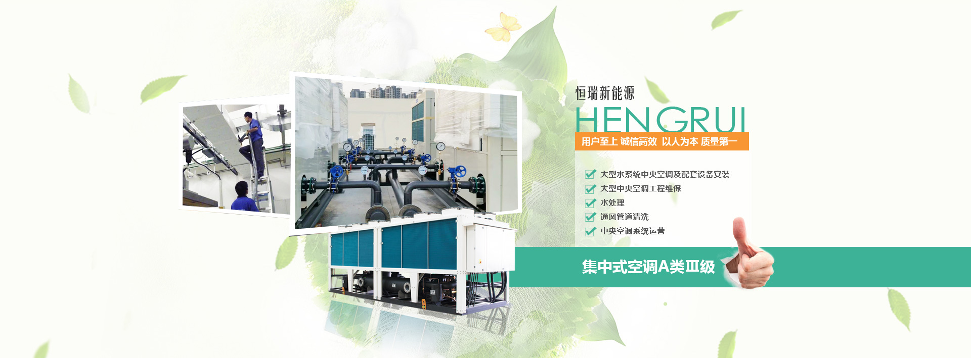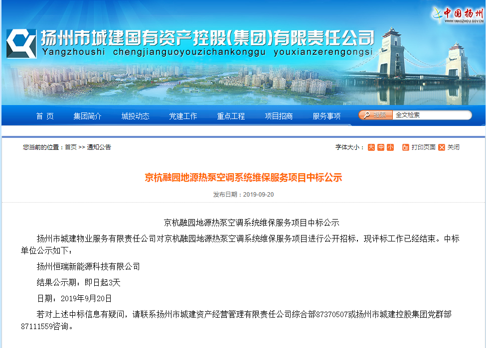 扬州恒瑞新能源科技有限公司位于扬州历史悠久的大运河畔,是一家专业化的综合型中央空调服务公司。公司主营大型水系统中央空调及配套设备安装、大型中央空调工程维保、水处理、通风管道清洗、中央空调系统运营等业务。公司拥有专业化的设计团队,资深的管理团队,高水平的安装队伍以及专业贴心的维保服务品质。 公司在扬州大力发展中央空调服务事业,已与特灵,开利,约克,麦克维尔,克莱门特、顿汉布什等大型中央空调厂家达成合作协议,保证维保配件材料原厂原品。公司拥有高素质专业维保技术人员,同时配备了空调主机清洗剂,试压泵,风管清洗机器人等专业设备。